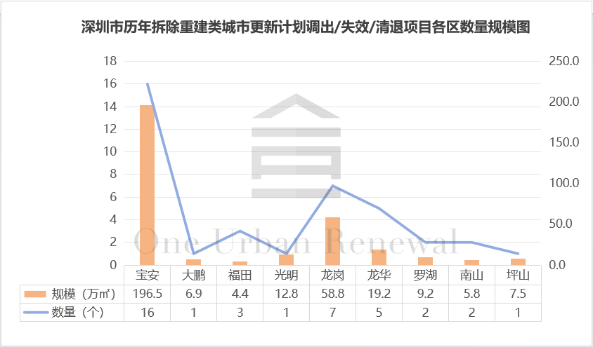 宝安毫无疑问摘得“退群冠军”,涉及拆除范围约196.5万平米;龙岗区紧随其后,7个项目约58.8万平米说没就没。