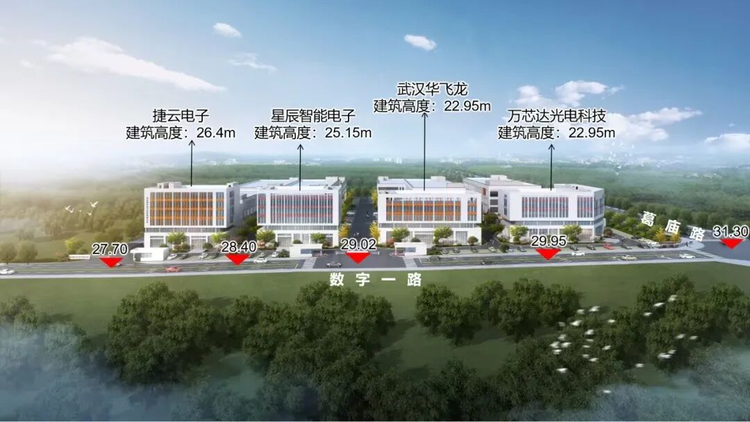 集中开工的四家企业涵盖电子制造、智能制造、光通信装备等多个战略性新兴产业领域,不仅技术含量高、市场前景广阔,更与红莲湖半导体产业园的产业定位高度契合。武汉星辰智能电子有限公司是武汉精亦特电子有限公司全资子公司,拥有十万级无尘车间、全自动SMT产线,新建厂房主要从事传感器、车载芯片以及汽车传感芯片模块的生产。湖北捷云电子科技有限公司投资1.2亿元,计划建设电子元器件与机电设备制造生产基地及相关配套设施。武汉华飞龙产业发展有限责任公司新建约2万平方米生产用房,主要开展配套机械加工产品及高端电流传感器等产品的研发与生产。武汉万芯达光电科技有限公司投资4100万元,计划建设厂房及研发楼,主要致力于光通信装备、智能头盔及科研仪器的研发与生产。