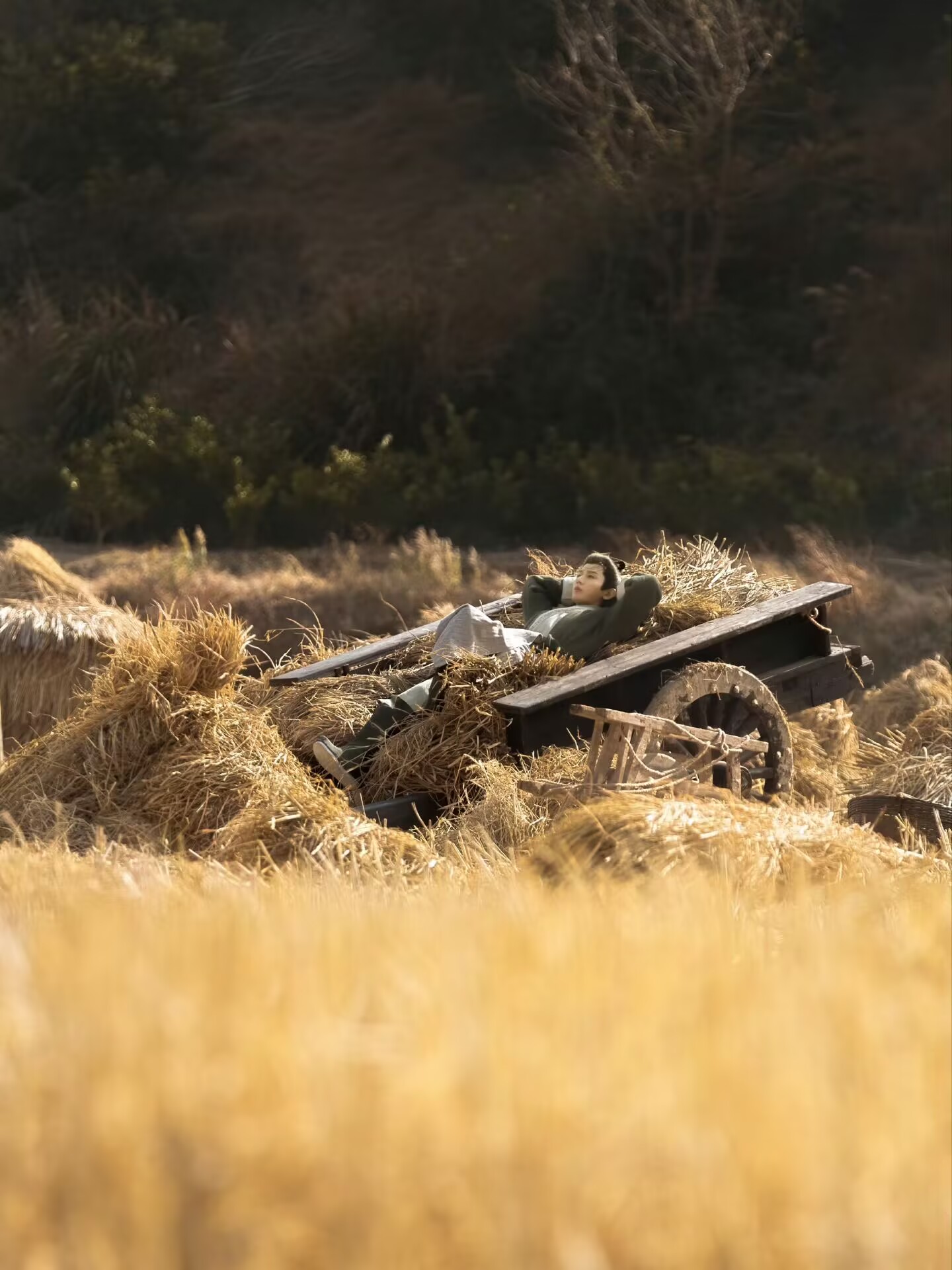 同样一片稻田,谢淮安登场时是愉悦的丰收之姿,离别时则是萧瑟的孤身之意,温暖黄色渐变凄凄之苍,很明显也是用色调表达心境温度