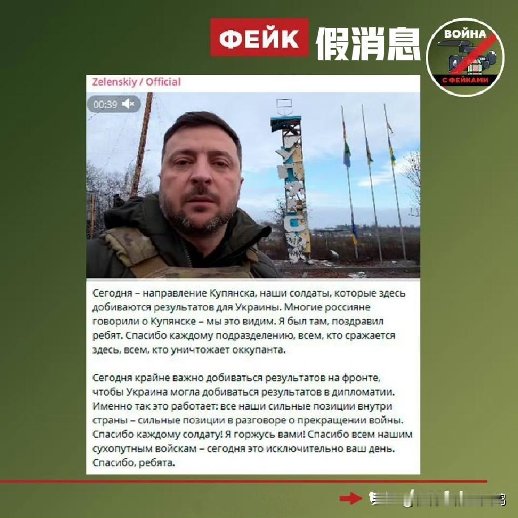 破案了!昨天,泽圣发布了在库皮扬斯克城市入口处的城标打卡视频,以此证明这座被俄军