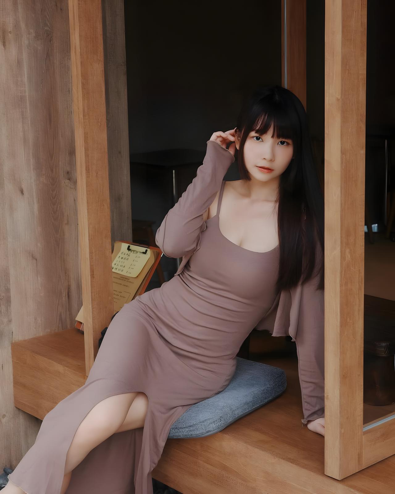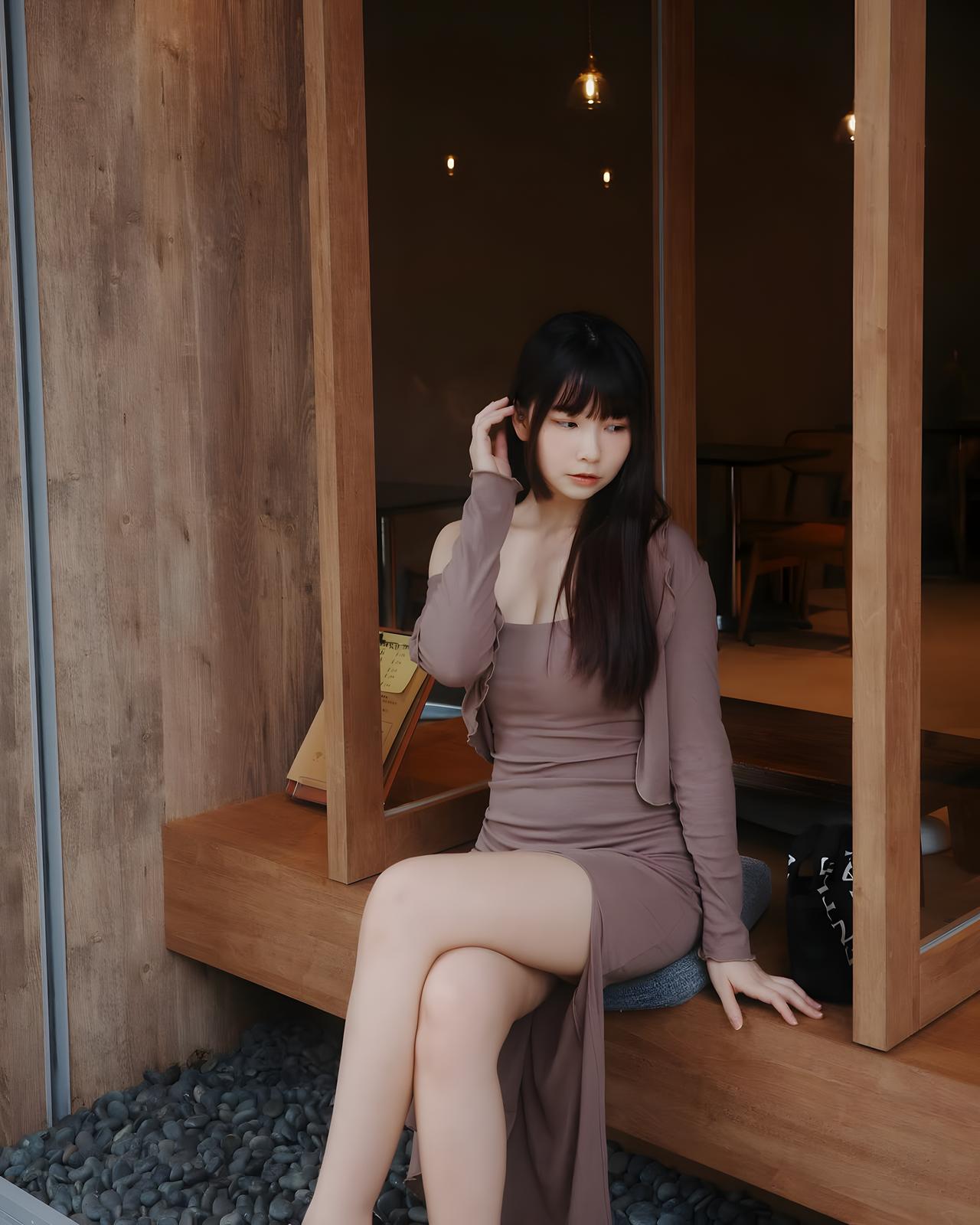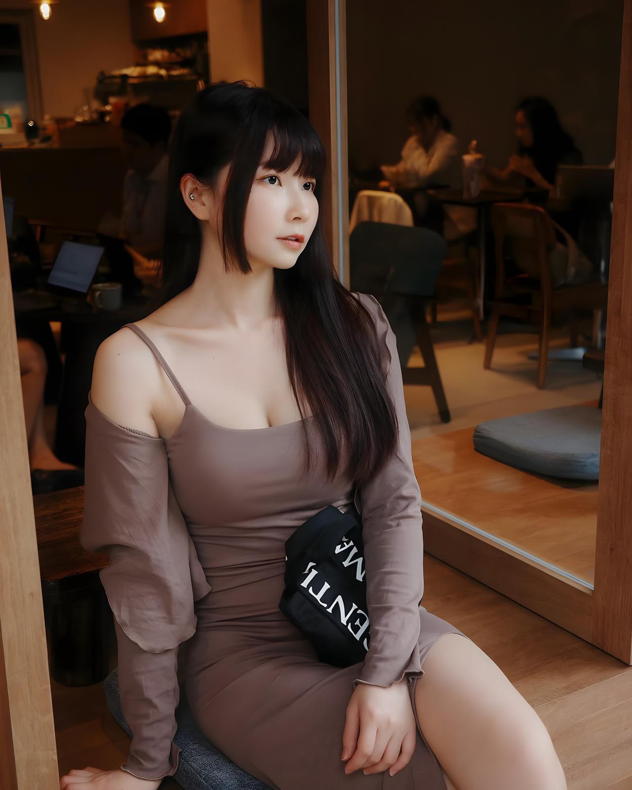 《温暖的午后时光》 午后的阳光透过咖啡馆的玻璃窗,洒在木质桌面上,形成一片片斑驳的光影。一位优雅的女士静静地坐在窗边,她身穿一件浅棕色的吊带连衣裙,肩部设计简约,露出她白皙的肩膀。她的黑色长发整齐地垂在肩上,与连衣裙的颜色形成了柔和的对比。她的脸庞清秀,眼神专注,仿佛在享受着这宁静的时刻。 她身旁放着一个黑色的包,包上印着白色的字母,简洁而时尚。木质桌子光滑的表面映出她的倒影,与周围的木质地板相互呼应,营造出一种温馨而舒适的氛围。咖啡馆内的灯光柔和,模糊的顾客身影在背景中若隐若现,仿佛在诉说着各自的故事。 整个环境显得安静而舒适,仿佛时间在这一刻静止了。女士的坐姿优雅,她的双手轻轻放在桌面上,手指纤细而修长。她的目光似乎停留在窗外的某个地方,脸上带着淡淡的微笑,仿佛在回忆着某个美好的瞬间。 这一刻,咖啡馆内的每一个人都沉浸在自己的世界里,享受着这难得的宁静时光。阳光、木质桌椅、优雅的女士,构成了一幅和谐而美好的画面,让人感受到生活中的温暖与美好。