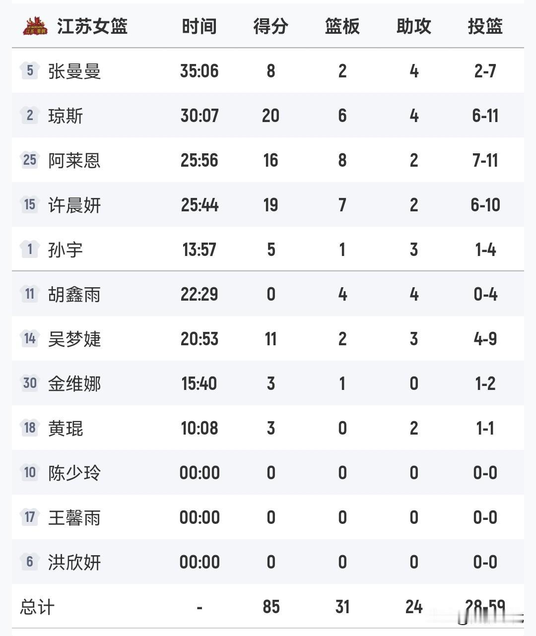 武桐桐13+10 许晨妍19+7 新疆女篮负江苏女篮