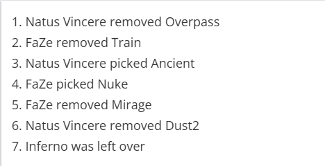NaVi选用Ancient,FaZe选用Nuke