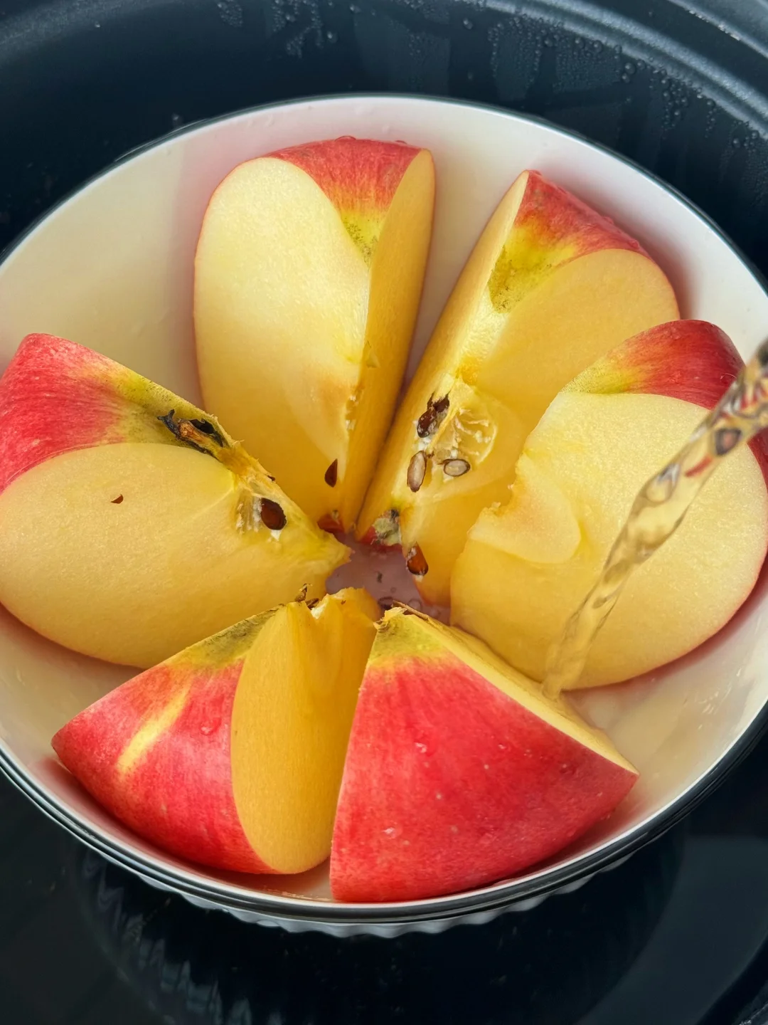 去年秋天开始,我把蒸苹果列入了每日养生清单,坚持下来后,身体的改变真的超出预期: 1. 晨起不再犯懒,一整天都透着精气神; 2. 脾胃胀气的老毛病消失了,消化状态肉眼可见变好; 3. 素颜时脸色也不暗沉了,气色看着红润不少! . 很多脾胃虚寒的朋友,生吃苹果会觉得胃里发凉、甚至反酸,但蒸苹果就完全不一样。苹果经高温蒸熟后,寒性会降低,对脾胃更友好 . 其中的膳食纤维也会软化,不仅能减轻肠胃负担,还能让果胶、维生素这些营养更好地被人体吸收,妥妥的“温和养脾胃神器”~ . ✨蒸苹果核心作用: 健脾养胃、生津润燥 还能帮助缓解肠道干燥的问题 🍎蒸苹果: 材料: 苹果1个 可根据体质加枸杞、桂圆或山药片,脾胃偏寒加2颗桂圆,想润燥加几粒枸杞 1️⃣苹果用盐搓洗表皮,去除果蜡和杂质,不用削皮 2️⃣从中间对半切开,挖掉果核和果蒂,切成小块或者保持整半都可以(我直接蒸熟吃的时候再去[大笑R]) 3️⃣想喝点汤水的,碗里加入适量清水,蒸锅加水烧开,把苹果放入蒸屉,大火蒸6-8分钟,直到苹果变软即可 . 我还发现,蒸苹果对秋冬容易口干、偶尔口腔溃疡的情况也有帮助,有时候我会在蒸的时候加一小片生姜,温性更足,尤其适合体寒的姐妹 . 小小的一个蒸苹果,坚持下来就能感受到身体的正向改变,养生真的不用追求复杂,简单的食材坚持吃就有大效果~