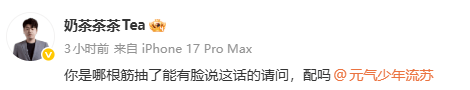 奶茶发文怒怼流苏,Bao教练在其评论区直接艾特流苏