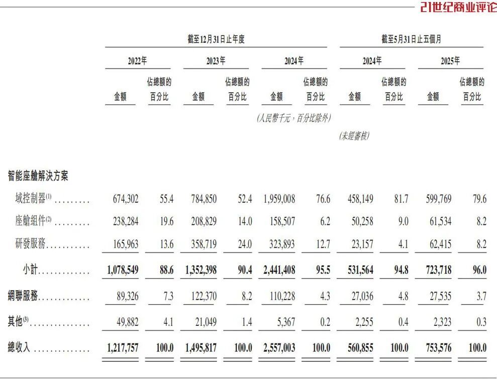 据灼识咨询,按2024年出货量计,博泰车联是中国乘用车智能座舱域控制器解决方案的第三大供应商,占据7.3%的市场份额。