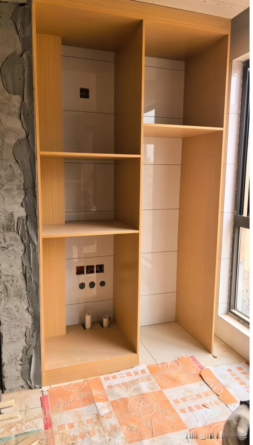 装修不能找年纪大的师傅。 阳台柜子,一边放洗衣机,一边水池,结果大爷夫妻两做成这样,这怎么改? 年纪大了,只按照老式来,灶台做高低台面他们给我做一样的!