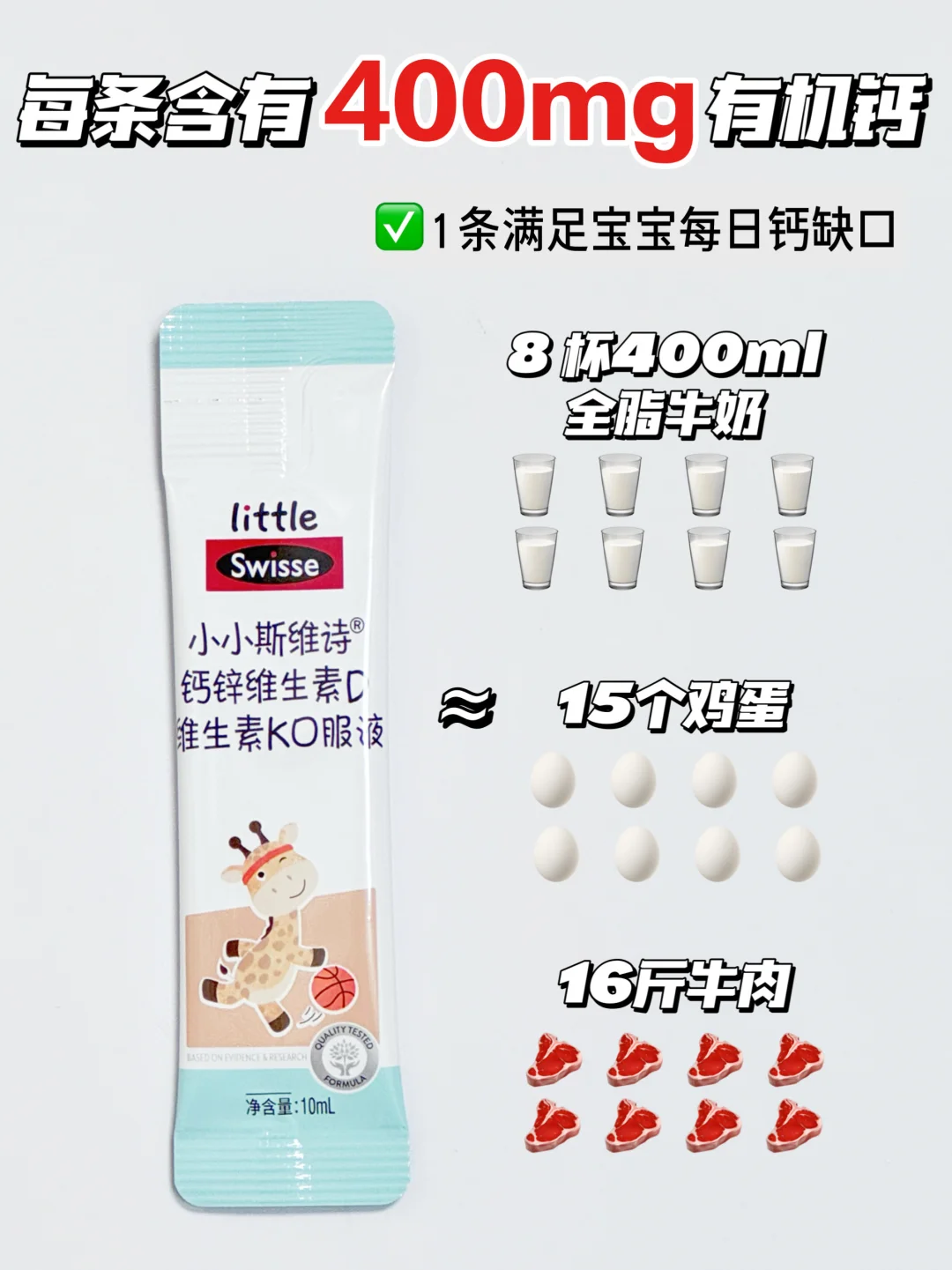 因为我自己比较mini,所以一直把给孩子补钙这件事放在心上 但是之前不太懂,跟风给娃补充赖氨酸,后面深入了解后才知道,赖氨酸真的没有宣传的那么“神”。🧐 赖氨酸是人体必需的一种氨基酸,是组成蛋白质的重要成分之一。但对于正常饮食的孩子,每天从食物中获取的赖氨酸已经能够满足成长需求。 过量补充可能带来肝脏、肾脏代谢负担,还会打破体内氨基酸的平衡,影响其他氨基酸的吸收和利用😰 尤其对于成长期的孩子来说,实在是得不偿失! 所以给孩子补钙,一定不能盲目跟风⚠️ 像3岁以上的孩子,处于骨骼发育的关键期,对钙的需求量巨大 一方面可以通过饮食摄入含钙量高的食物补充,如奶制品、豆制品、深绿色蔬菜 但如果无法从食物中获取足量的钙,则需求通过钙剂补充✅ 市面上钙补充剂类型多样,常见的有以碳酸钙为代表的无机钙和以柠檬酸钙为代表的有机钙 给儿童补钙,要选择➡️柠檬酸钙,不需要胃酸参与,钙分子微小更加温和好吸收! 我家娃从小吃过的钙剂两只手都数不过来,后面遇到了斯维诗长颈鹿钙🦒,无论是钙量、吸收、配比都很优秀 每条400mg的高含钙量深得我心,相当于8杯牛奶 ,一条满足孩子饮食外的钙缺口! 而且用的是微米级柠檬酸钙,分子更小更好吸收💧吸收率直接提升81%。 还搭配了柠檬酸锌+维生素D3+维生素K2,补钙黄金三角相互协同,营养吸收直接拉满! !!!最最重要的是,它成分精简,没有赖氨酸等复杂的成分,也不担心会给孩子带来负担! 对于孩子来说,液体钙更好吞咽,不容易卡喉抗拒,撕开就能喝,椰香酸奶口感的,孩子每天主动打卡! 给孩子补充营养,贵不在多,在于精准和适合。盲目跟风只会徒增负担,选对方向,才能为孩子的健康成长助力~✊