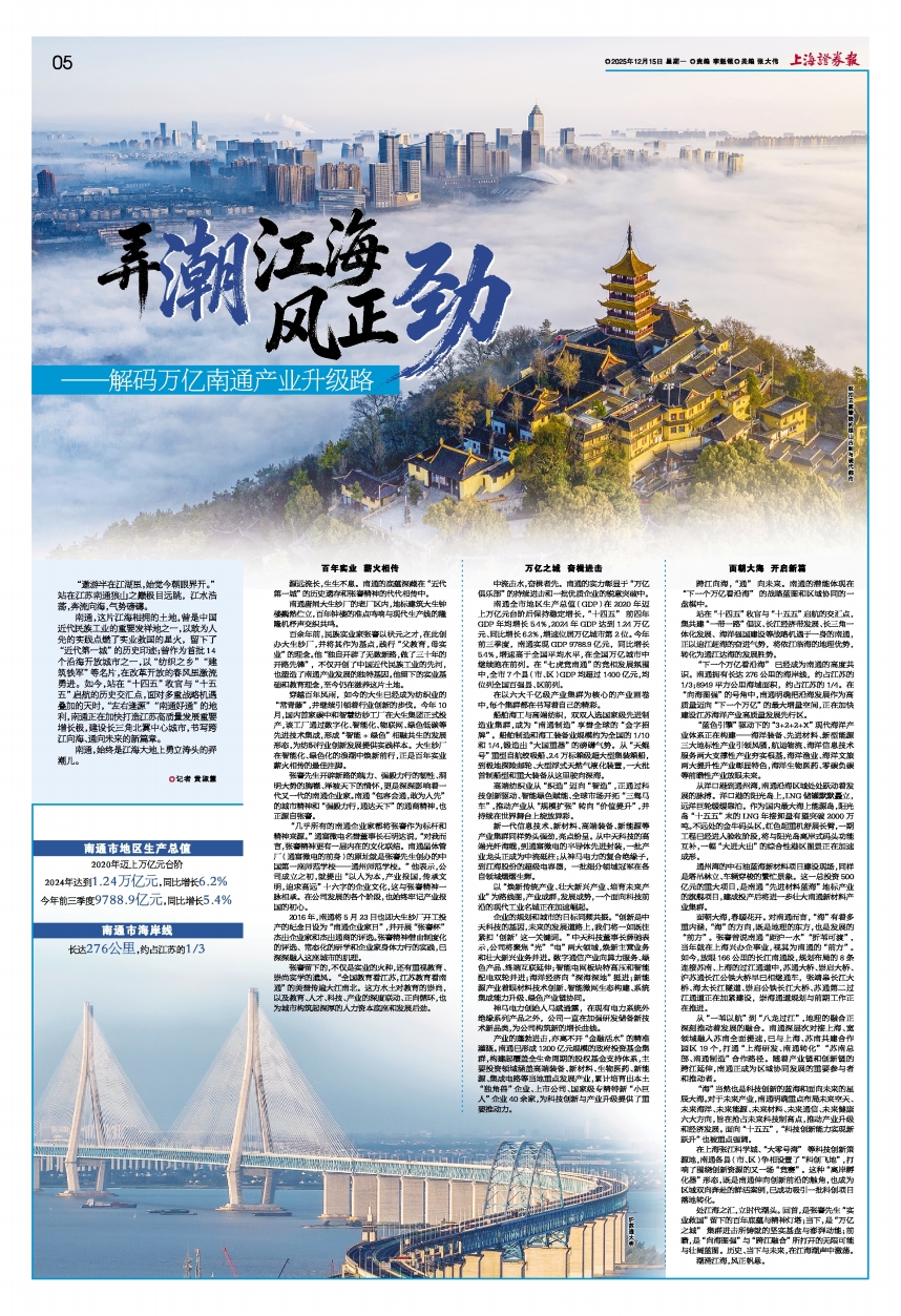 站在“十四五”收官与“十五五”启航的交汇点,集共建“一带一路”倡议、长江经济带发展、长三角一体化发展、海洋强国建设等战略机遇于一身的南通,正以追江赶海的奋进气势,将依江临海的地理优势,转化为通江达海的发展胜势。