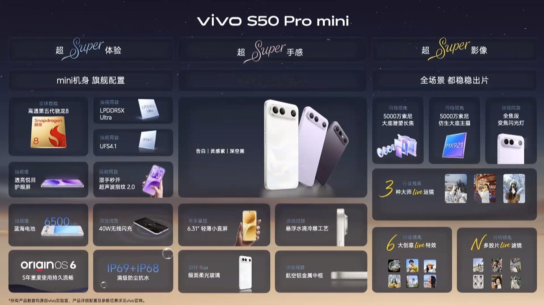 vivo S50 Pro mini小尺寸却有大能量啊,战斗天使。性能、设计和影像全都超Super~真做到了“超美 超强 超出片”,颜值实力全在线!