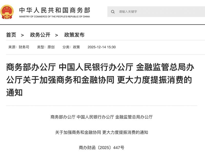 以下为《关于加强商务和金融协同更大力度提振消费的通知》原文:
