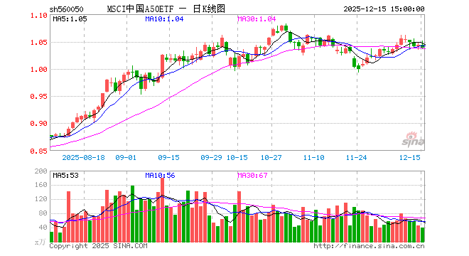12月15日,MSCI中国A50ETF(560050)跌0.57%,成交额4094.97万元。当日份额增加250.00万份,最新份额为38.82亿份,近20个交易日份额减少1.00亿份。最新资产净值计算值为40.30亿元。