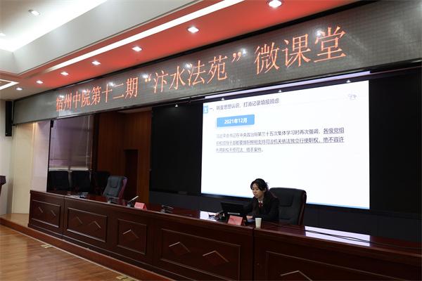 为进一步加强党风廉政建设,提升我院干警廉洁自律与拒腐防变能力,12月12日,宿州中院举办第十二期“汴水法苑”微课堂,邀请督察室韩雨瞳同志走上讲台,为全市法院干警授课。