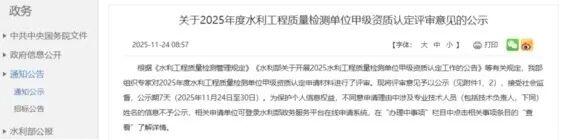 近日,水利部官网公布2025年度水利工程检测资质评审结果,荆门市城市水务集团有限公司下属子公司湖北大衡工程检测有限公司(以下简称“大衡公司”)申报的金属结构类、机械电气类、量测类三项甲级资质顺利通过。结合此前已获的岩土工程类、混凝土工程类甲级资质,大衡公司成功跻身水利工程检测“五甲资质”行列,为企业高质量发展注入强劲动能。