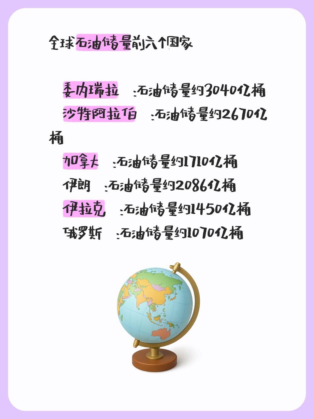 全球石油储量前六个国家 委内瑞拉:石油储量约3040亿桶 沙特阿拉伯...
