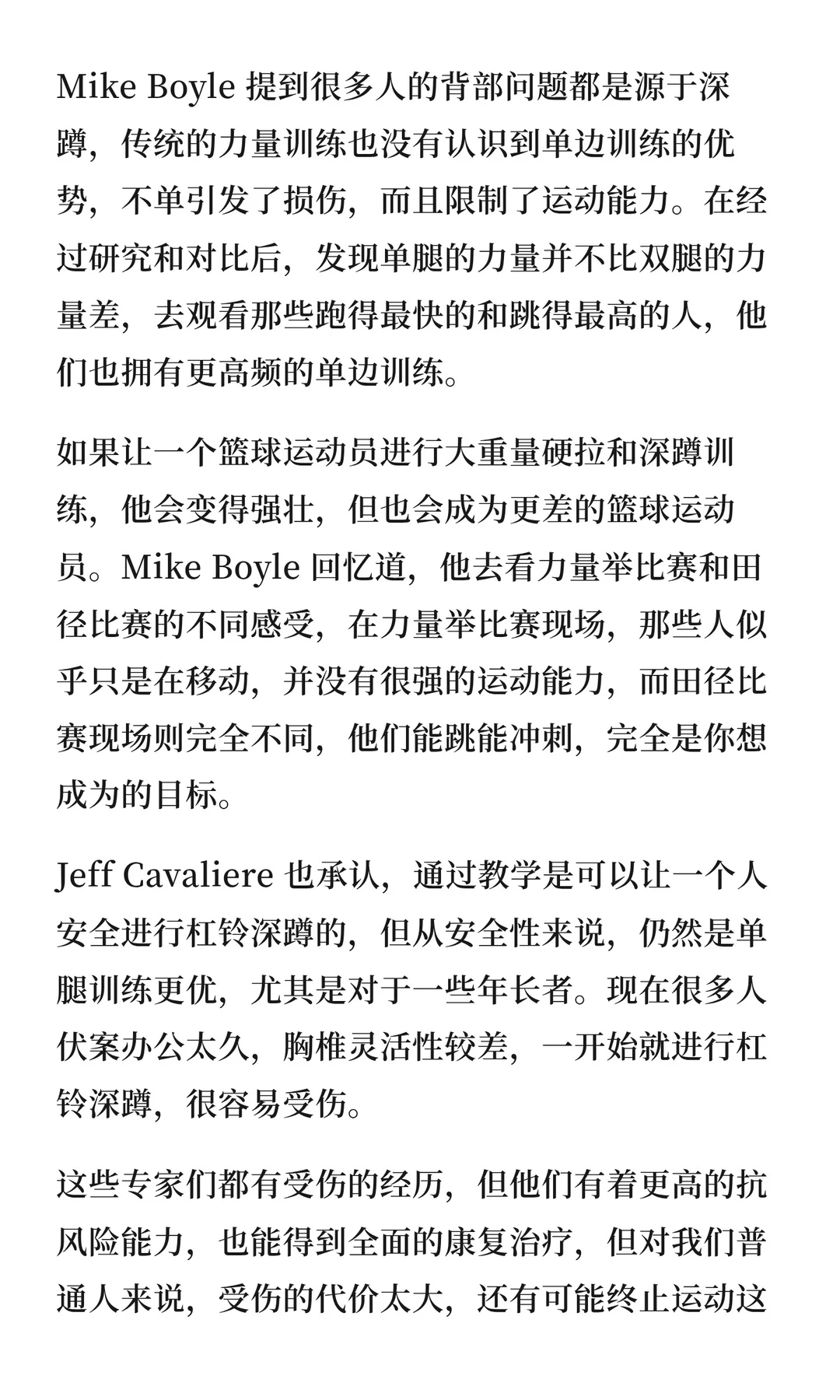 Mike Boyle强调:单腿训练不仅能提升运动表现,还更安全,尤其适合长期伏案、胸椎灵活度差的人群。