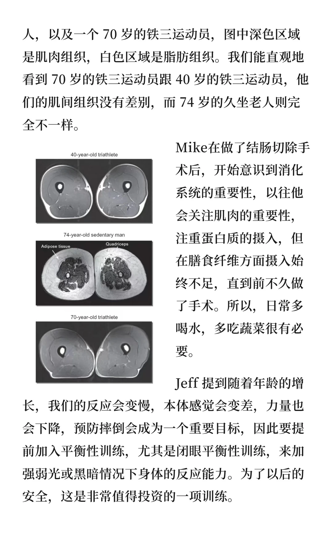 即使是70岁的铁三运动员,肌肉状态也可以接近40岁运动员。