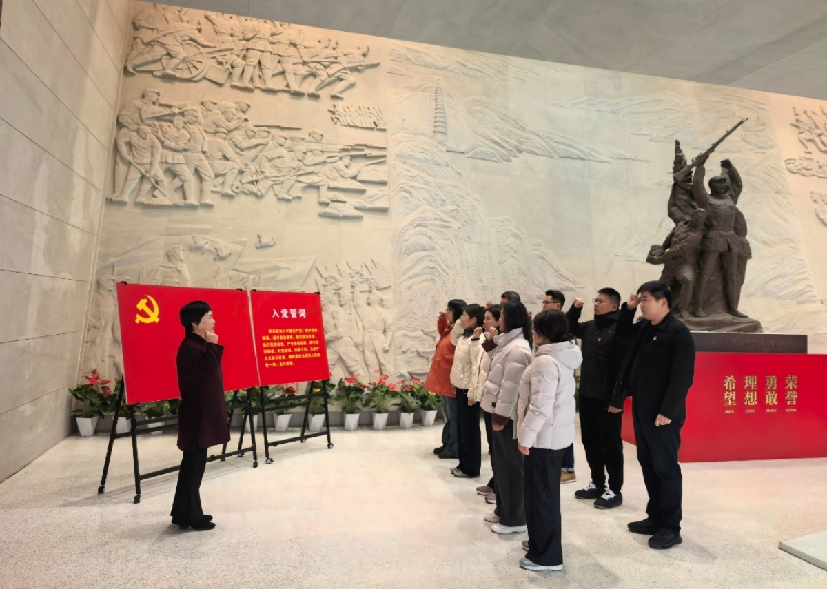 “我志愿加入中国共产党,拥护党的纲领,遵守党的章程……”铿锵有力的誓言在许昌革命烈士纪念馆内久久回荡。为深学细悟党的二十届四中全会精神,让红色基因融入血脉,让革命精神滋养初心,12月11日,黄淮学院产业创新发展研究院党支部书记邵莲芬、副书记张文静带领党员代表走进这座承载着许昌红色记忆的精神殿堂,开展“深学细悟党的二十届四中全会精神,实干担当践行初心使命”主题党日活动,在沉浸式研学中追寻先烈足迹,在回望奋斗征程中凝聚发展力量。