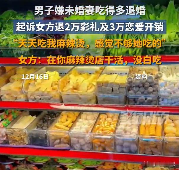 “天天来我家吃那么多,家里都不够她吃。”一男子在跟女子定亲之后,女子到男子家的麻辣烫店帮忙,女子可能饭量大,吃的多,这一点让男子很不满意,指责女子吃的也太多了,天天吃这么多,家里根本不够她吃。于是提出分手,还让女子把2万彩礼退还、另外还有个3万块的恋爱开销也要退还。 star星视频12月16日报道了这则新闻。情感变淡了,就可以责怪女方吃的多?这是否可以成为男方甩掉女方的理由呢? 大家会嫌弃自己的女友吃的多吗,会为此斤斤计较呢?贺先生就是这样的人。 不久前,贺先生经过家人介绍,相亲认识到一位女子王女士,二人见面之后,感觉还可以,于是就准备谈朋友。 确定关系之后,双方家属也约定了婚姻契约,男方给出了头茬彩礼2万元。确定了结婚契约之后,王女士准备到贺先生家开的麻辣烫店里来帮忙。 帮忙了一阵子之后,贺先生发现自己的未婚妻王女士,这饭量可真大,特别能吃,每天虽说是过来帮忙打理店内的生意,还帮忙端碗擦桌子的,但是她吃麻辣烫的时候,却给自己夹取了很多菜。 贺先生看到王女士每次吃麻辣烫,一煮就是一大碗,天天吃、顿顿吃,照这样下去,这个店都不够她吃啊。 所以,每次见到王女士准备吃饭的时候,贺先生总是头大的很,跟自己父母就躲在后厨,暗搓搓窃窃私语,不断的说王女士的坏话。 就这样,半年过去了,因为饭量大这件事,贺先生对王女士也逐渐没有了感情。每次看到女方吃这么多,感觉再吃下去店里都不够她吃,贺先生就提出了分手的诉求。 贺先生当面跟王女士提出分手,同时还要求她要把之前给的2万元的彩礼钱退回来,以及恋爱期间花费的3万元,也要她一并退还。 王女士感到很无辜,怎么说分手就分手呢。贺先生就表示,“你天天来我家吃麻辣烫,你说我家也是开店做生意的,这样吃,家里够你吃吗?” 听到这话,王女士也很生气:“你也知道我天天来你家帮忙,但是并没有要你们一分钱,吃你店麻辣烫还不愿意。我干活了的啊,没有白吃你的!”因此,王女士拒绝退钱。 双方实在没法协调,贺先生直接就把王女士给上诉了。贺先生称,王女士虽说是过来干活,但是净挑轻活儿干,吃的还多。 王女士则指出,她天天过来帮忙,就跟上班一样,没索要工资,也不是白吃白住,毕竟是付出劳动力的。最后,经过调解达成一致,王女士需要返还给贺先生彩礼款1万元,其他恋爱期间的开销则不予以返还。 1.王女士到贺先生家的饭店来帮忙,也没有索要工资,就是吃的比较多。王女士此举是否合理呢? 根据《民典法》规定,好意施惠,基于友善互助的无偿帮忙行为,不构成法律上的雇佣或者劳务关系,虽然店主没有约定报酬,没有支付工资的义务,但是帮忙者也得到了必要的餐饮支持,虽然吃的比较多但是没有超出合理范围,不构成不当得利。 所以,王女士的做法并没有不合理的地方,吃得多,只是店家一方的认为,而且王女士也作出了帮忙,属于互帮互助的传统。因此,王女士的行为不违法、不违规、也不存在不道德之处。 2.男子因为女子吃得多,就想要退婚,并且想要索要彩礼跟恋爱开销,他的诉求是否可以如愿? 根据《民典法》规定,退婚是个人自由,但是索要彩礼跟恋爱开销需要满足特定条件。双方没有办理结婚登记、或者没有共同生活,退婚之后可以返还部分彩礼。 但是恋爱开销属于赠与,恋爱期间的共同消费,在法律上会被认定为是自愿的赠与行为,分手之后一般无权要求返还。 如果说,因为女方吃的多,凭借这个里有提出退婚,往往是不符合法定退还条件的。但是如果没有领证、没有长期生活等,一方要求退婚,是可以索要回部分彩礼钱的。 贺先生还提出,想要王女士返还恋爱期间的开销,这个则无法得到满足,因为恋爱期间是二人共同消费,包括吃饭、看电影、娱乐消遣等,这些共同享受的费用,退婚时则无需返还。 看完本则案例,大家都作何看法呢,欢迎一起来讨论。