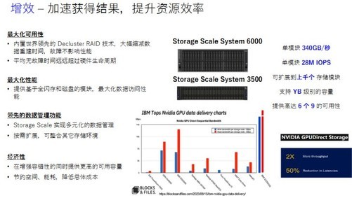 IBMStorageScale6000给出的答案是“存算分离+智能分层”。在某量化交易企业案例中,其金融大模型训练需要TB级带宽,传统方案需采购数十台存储设备,而IBM单台4U设备即可提供340GB/s吞吐,Checkpoint写入时间缩短一半,这意味着模型迭代周期从两周压缩至一周,直接转化为交易策略的领先优势。