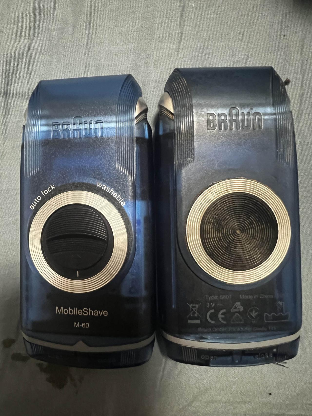 用了十五年的博朗m60终于退休了,由于一直用的很顺手,电商上又买了同一款!新款m60好像网更加细腻,使用起来也更加顺滑! 以前最开始刮胡子用的是我爸的剃须刀,飞鹰刀片,那玩意用的不好,一不小心就会划破皮!后来崇拜巴菲特,用了吉列剃须刀!可是这些手动剃须刀一方面用起来挺麻烦,大多数情况下都要用剃须泡沫,不然刮起来有时候会卡住,一卡住就会痛!另一方面,可能胡子太粗了,用了三五次就得换刀片! 后来就用电动的剃须刀,用过飞科,用过飞利浦,还用过松下,用下来都有各种毛病!特别是充电式的用到后来电池衰减就没办法用了!后来一个朋友给我介绍了博朗剃须刀,就买了这么一个使用替换电池的基础款! 用上后就感觉特别顺手,一方面动力强劲,刮的又快又干净,另一方面替换电池不要考虑电池衰减问题!买的磷酸铁锂的充电电池,充满电能够用几个月!