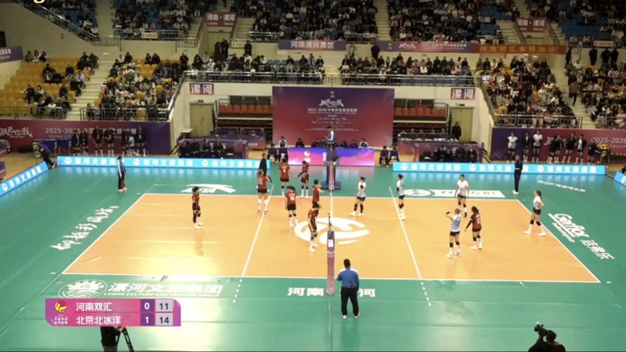 河南女排的日本外援和王思敏的一传体系是流畅的,但是第一局以大比分18-25输给北