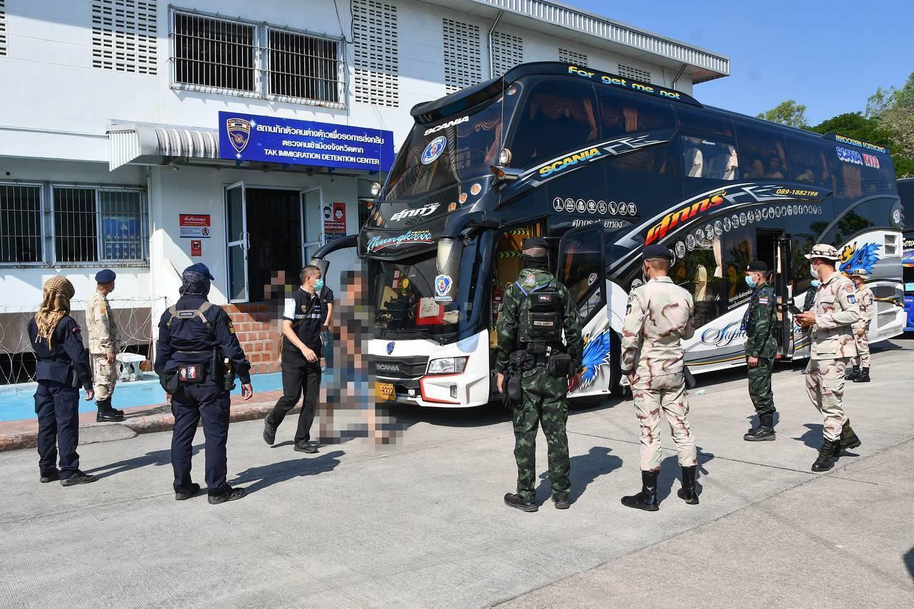 泰国达府移民局配合中方遣返100名中国籍被拘人员2025年12月16日上午10时,达府移民局局长辛格拉·阿沙沃普警上校委派副局长纳瓦信·蓝讪警中校,以及达府移民局调查科长尼拉瓦·金盖警少校,联合达府移民局工作人员,协同中华人民共和国驻泰王国大使馆、湄索县行政安全机构、玛努特种部队军事人员,共同押解100名中国籍被拘留人员。上述人员此前被拘押于第二外籍人员拘留所等待遣返,现经由达府湄索县塔赛律镇湄索机场通道被驱逐出境。海外新鲜事热点现场