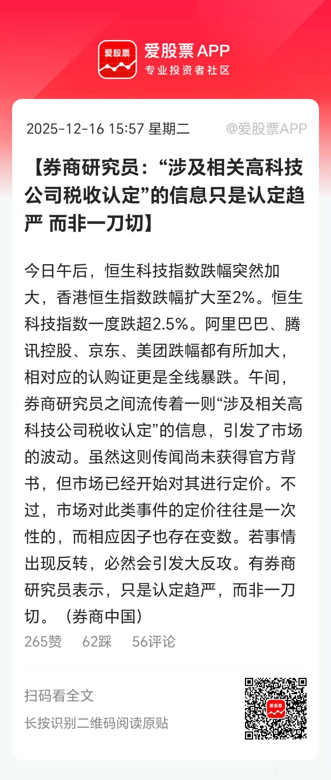 今天港股大跌,跟市场传言“互联网要按25%交税,不再维持15%高新技术企业的税率”有关。虽然这则传闻尚未获得官方背书,但市场有点风声鹤唳。恒生指数一度跌超2%,恒生科技指数一度跌2.7%。阿里巴巴一度跌近5%,京东跌超3%,美团、百度跌超2%,腾讯跌超1%下破600港元!港股今年一度牛冠全球,涨幅一骑绝尘。但最近走的弱的一批,尤其恒生科技高位下来跌了20%,进入到技术性熊市了。为什么港股这么弱?可以找很多的理由,我觉得最重要的是新股发行太多了。宏大的叙事,也扛不住这么庞大的IPO供给,港股快被新股榨干了...!(爱股君)