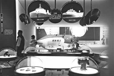 12月16日,“向海而行——中国南海西北陆坡海域深海考古特展”在北京大运河博物馆启幕。展览融入新型展示技术和互动展项,通过精美文物、水下影像和考古故事,让观众了解南海深海考古的重要发现。图为观众观看在深海考古中发挥关键作用的“深海勇士”号载人潜水器模型。