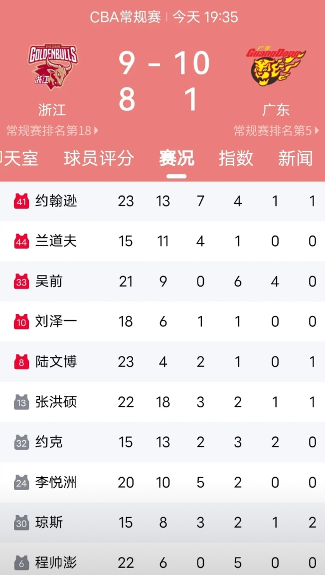 浙江主场98:101惜败广东遭开局两连败,这四人是输球最大卧底!