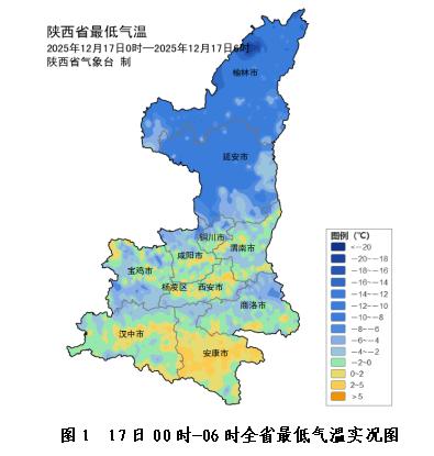 昨日我省大部地区维持晴间多云天气,关中中南部气温继续回升,较前一日升高2~7℃;最高气温分布:陕北大部2~11℃,关中、陕南大部9~18℃,最高留坝17.9℃,西安站15.3℃。今晨(截至06时)陕北大部、关中部分地区、秦巴山区最低气温低于0℃,最低气温分布:陕北-20~1℃,最低神木市圪丑沟站-20.0℃;关中-10~5℃,最低千阳高崖站-10.1℃,西安站1.1℃;陕南-8~5℃,最低留坝宽沟站-8.3℃(图1)。
