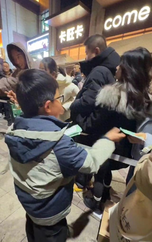 “吃过晚饭就出门了,买了大概有200多个暖宝宝。”朱女士告诉记者,买的时候儿子还特地告诉售货员要买保暖时间持久的暖宝宝。买好了暖宝宝后,朱女士一开始带着小何到了迎春街,给吃炖锅的游客发,但有游客可能不了解情况拒绝了,让小何有些不好意思。随后,朱女士把儿子带到绥安路,给在奶茶店和桃酥店门口排队的游客发暖宝宝,大家都很感谢,让小何自己也很高兴。
