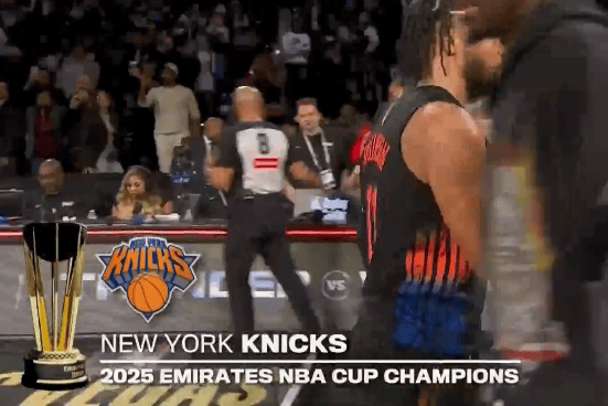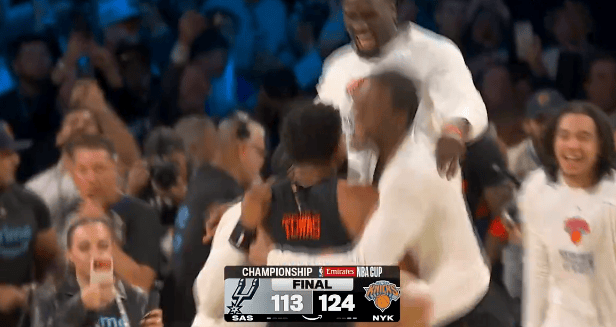 尼克斯战胜马刺夺得25年NBA杯冠军,全队激情撞胸庆祝
