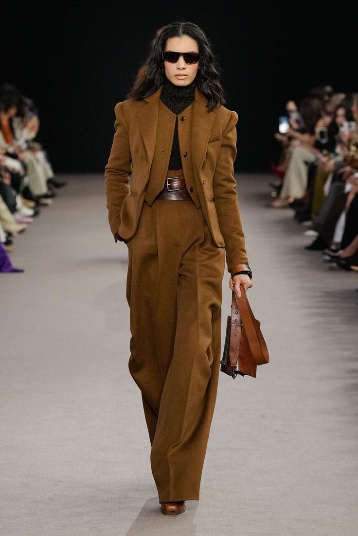 今年秋天“阔腿裤”穿搭火爆! 秀场棕色系**穿搭公式**