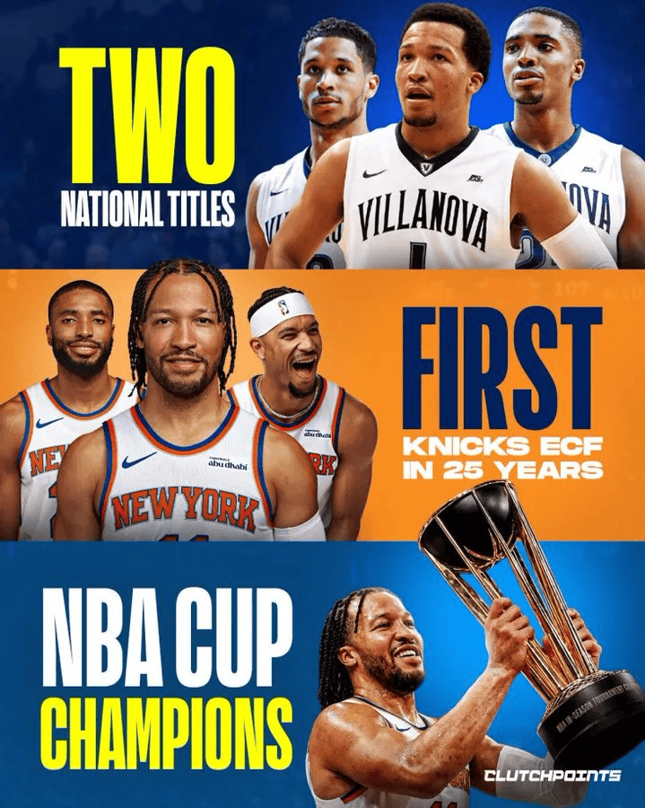 NBA杯的冠军和NBA总冠军的分量并不相同,但这依旧是尼克斯自1973年以来收获的首个冠军,尼克斯的球迷们得好好感谢这些维拉诺瓦大学出身的球员。