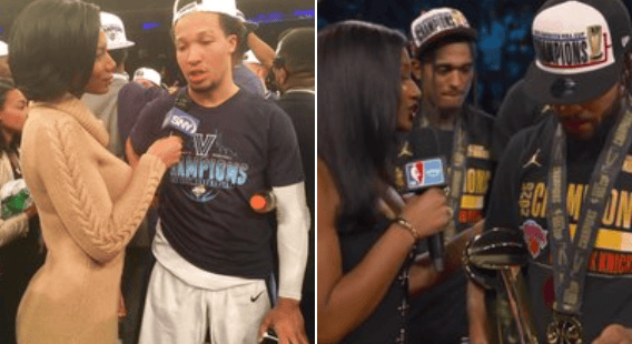 纽约媒体SNYtv更新社媒晒出杰伦-布伦森分别帮维拉诺瓦大学夺得NCAA冠军时的捧杯照片和今日帮助尼克斯夺得NBA杯冠军时的捧杯照片。
