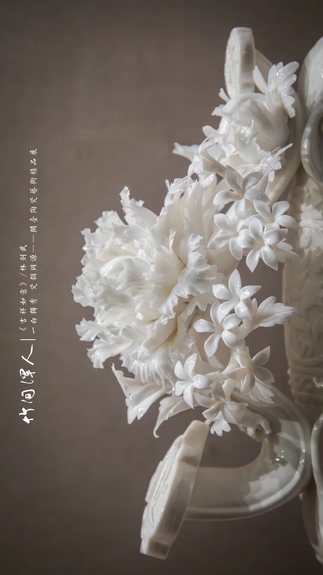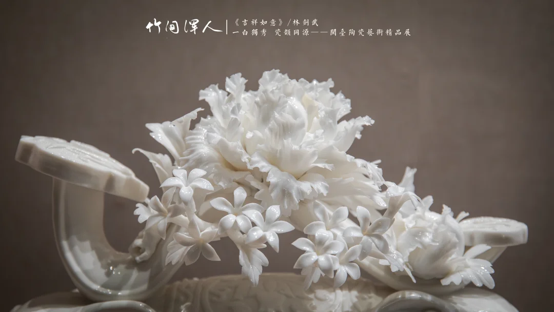 《吉祥如意》/林剑武 摄于:闽台缘博物馆 . 你们瓷器届是要发Nature吗🥹🥹🥹这么多创新点,仿纸、仿纱、仿发丝、仿羽毛、仿花……我实在想不出还有什么是你们做不了的,太牛了! .