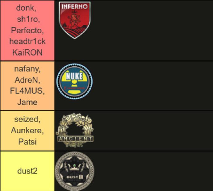 替换Inferno的职业哥有:donk、sh1ro、Perfecto、headtr1ck、KaiR0N-