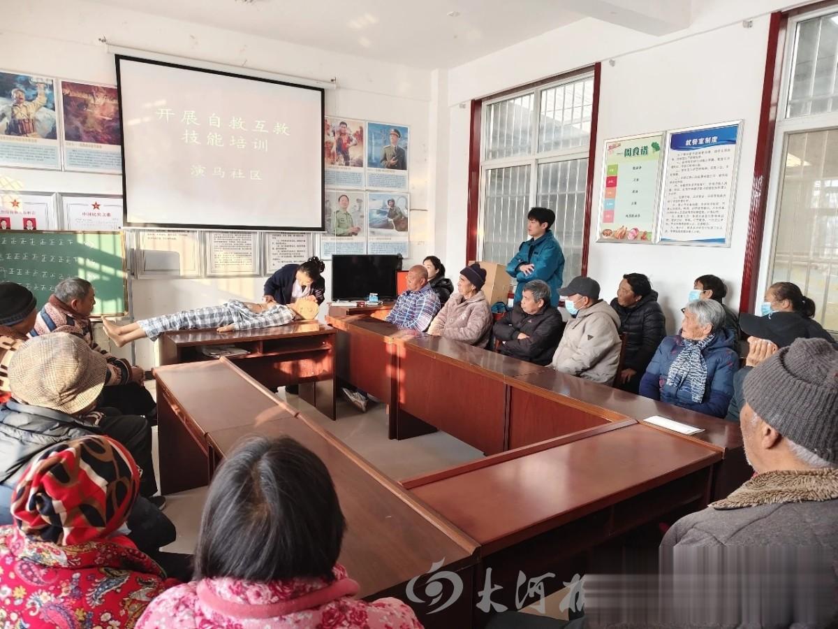“按压时着力点是手掌的掌根,双手掌根重叠十指相扣……”12月16日,九里山街道演马社区活动中心内气氛专注,一场以“急救普及惠邻里,文明实践护安康”为主题的急救互救技能培训活动在此举行。