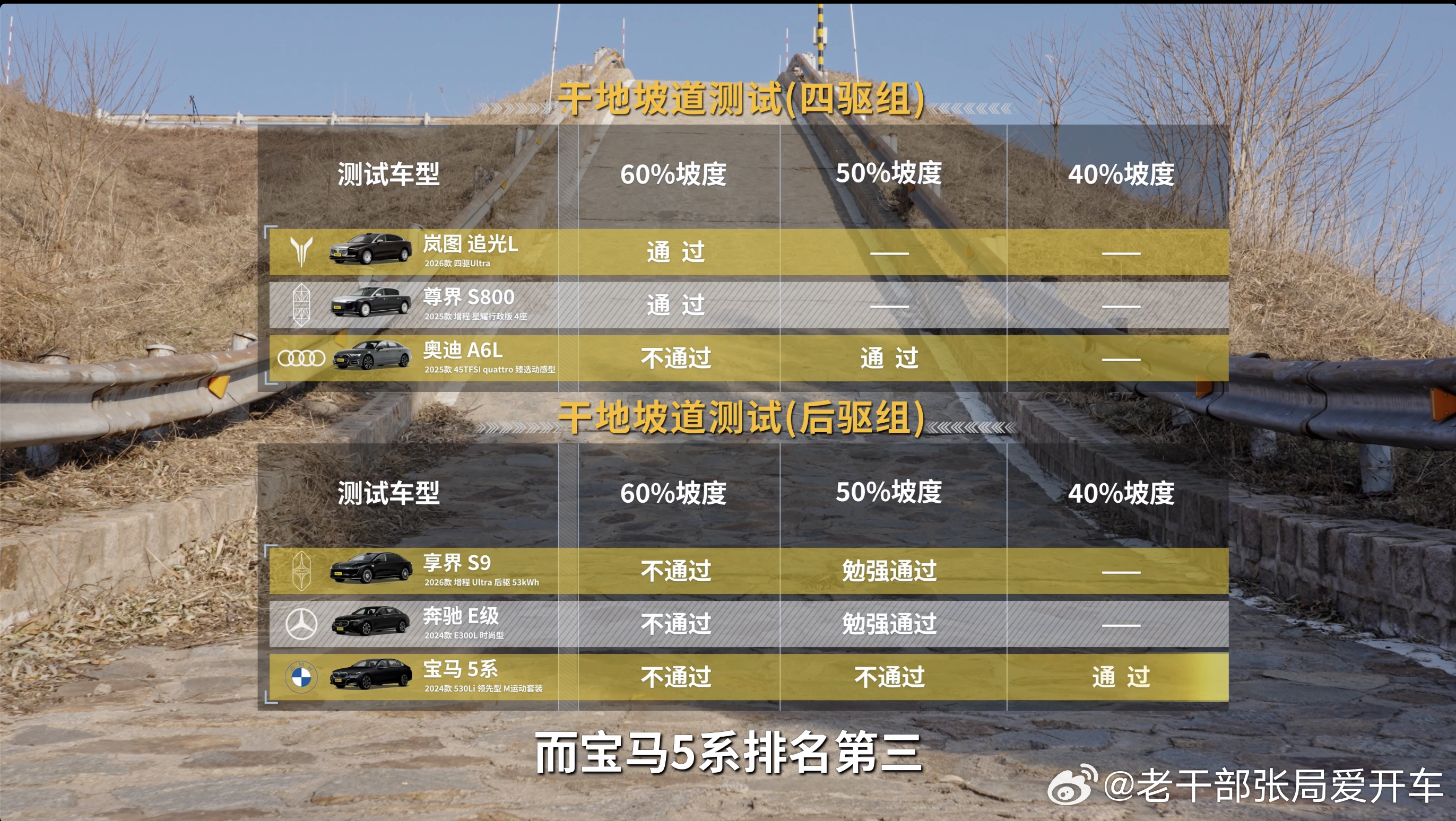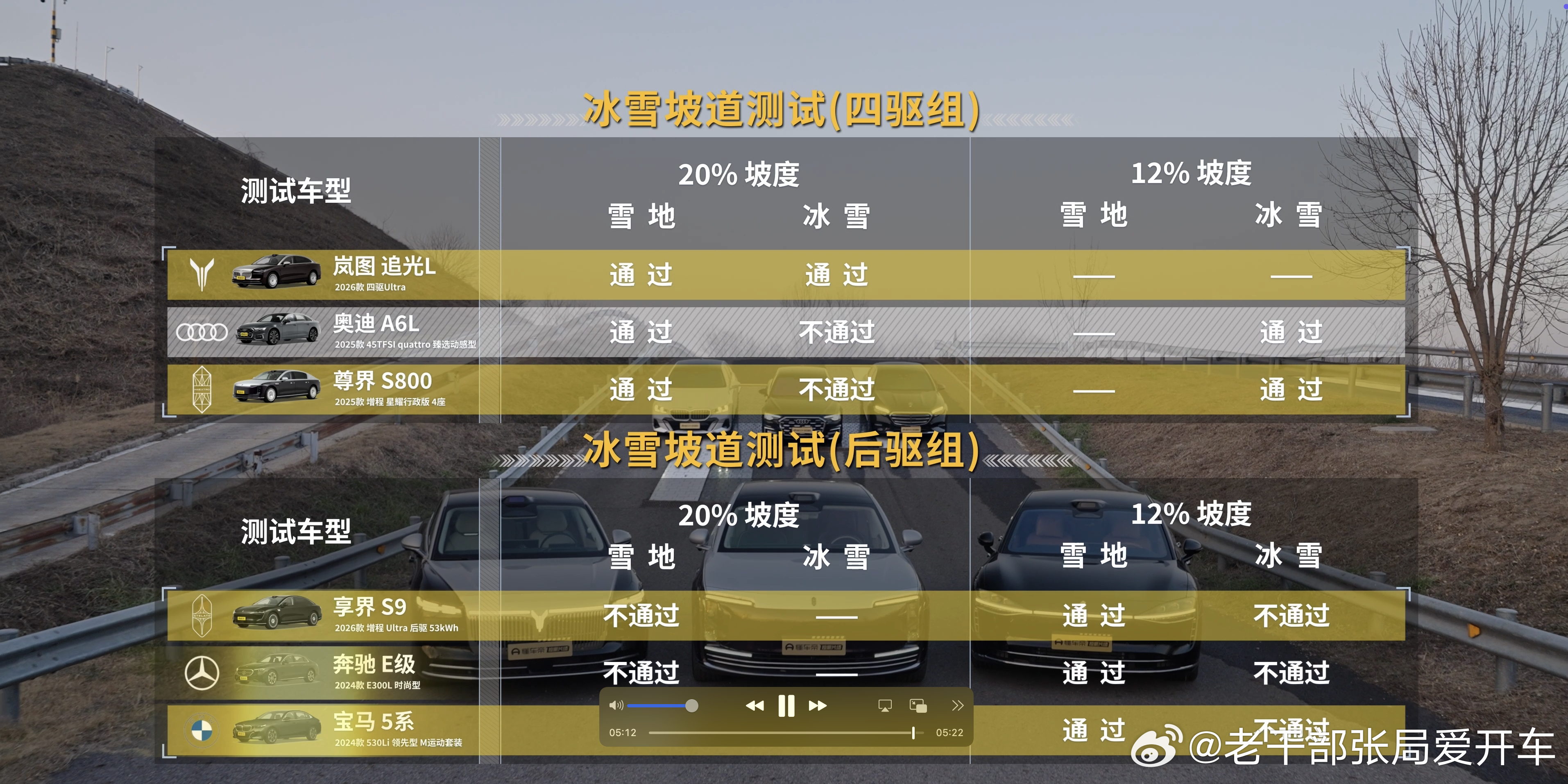 上周末懂车帝独家片场推送的测试,国产高端新能源轿车三强 VS 56E,有关性能测试。综合第一的是追光L,综合第二的是尊界S800;油车里A6L相对能打。结果不意外,不管是不是谁家的广子,反正追光L的800V插混架构,也就是岚海智混,理论上就是应该这么能打。最近灯厂家的小壁虎“夸戳”有点受伤,寒测季也到了,想得到肯定会诞生一波对比。没办法,一是曾经大家心中的标杆,另一个确实电机使劲上性能这事儿普通油车确实挡不住。大V聊车气场全开