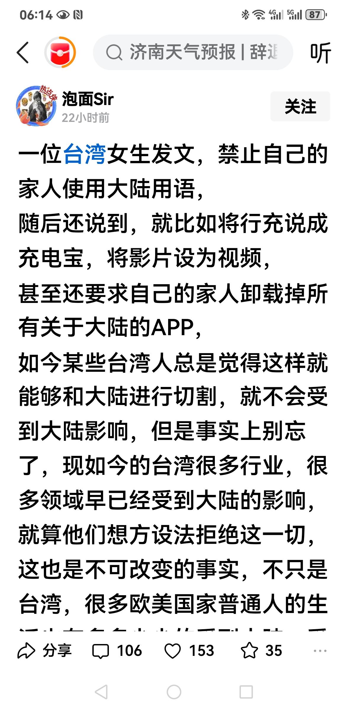 别动不动就说人家切割,动不动就上岗上线的,在有些用语方面,我们有些用语确实不规范,行冲,就是旅行充电、移动充电的意思,充电宝太泛泛,和家用充电器有何区分?。再比如有些称谓:咱称“老婆”(古代是指接生婆),人家称“内人”、“太太”。咱叫“老公”(古代指太监),人家称“夫君”、“内子”。咱叫“自行车”(车,自己会跑?),人家叫“脚踏车“。咱称“大妈”,人家称“阿姨”。咱称“土豆”,人家称“马铃薯了”。咱称“厕所”,人家称“化妆间 ”。咱叫“上厕所”、“上洗手间“,人家称“如厕”。咱叫“太空船”,人家称“太空梭”。咱叫“复制”,人家称“拷贝”。咱叫“出租车”,人家称“计程车”。咱叫“煤气”,人家称“瓦斯”。咱叫“服务员”,人家称“侍者”。咱叫“盲校”,人家称“启明学校”。咱叫别人“弱智”,人家称“智障”。咱叫“说服”,人家称“说(shui)服“。咱叫“残次品,人家称“瑕疵品”。咱问“你是哪一年的”?,人家说“您贵庚了”?。谁的更精准、更儒雅一些,一目了然。都是一家人,谁的用语科学合理,就应该相互学习,不要动不动说切割,用词准确些有什么不好?