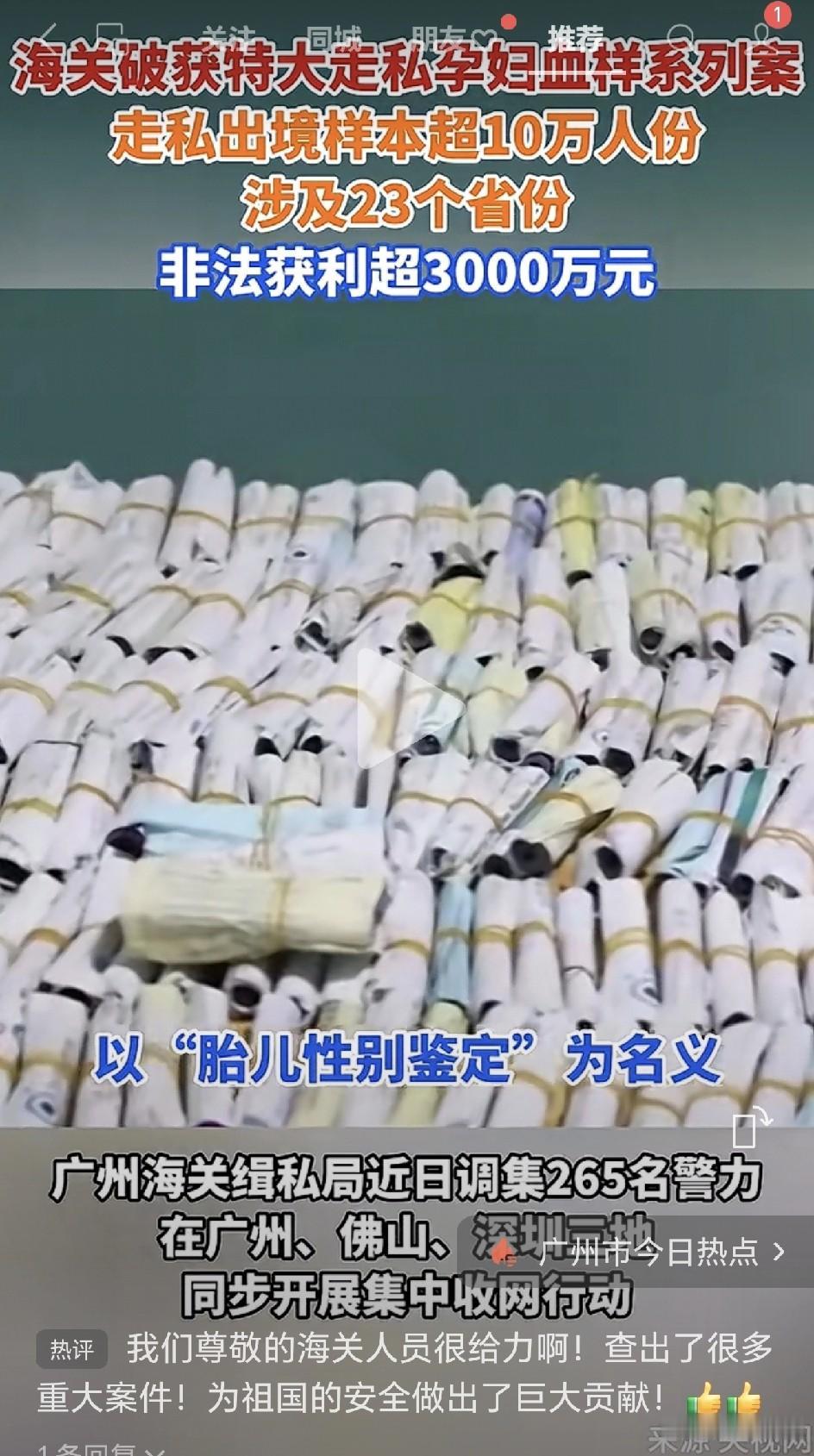 10万份孕妇血样偷运境外!海关查获黑心生意:藏大腿绑肚皮,就为提前知道男女!网友:你家有皇位要继承啊?! 特制行李箱夹层、腹部捆成“救生圈”、大腿内侧层层包裹——这不是什么特工行动,而是一群走私犯偷运孕妇血样的真实场景,就为了告诉你肚里是男是女。 “花3000块,怀孕6周就知道男女!”当这样的广告刷屏朋友圈时,一场波及全国23个省份的黑色交易已经悄悄进行了数年。 12月16日,广州海关缉私局在广州、佛山、深圳三地统一收网。现场查获的走私孕妇血样数量惊人——超过10万人份,黑心团伙非法获利超过3000万元! 你绝对想不到,这些人为了运送几管血样有多“拼”。 他们的“运输方式”堪称奇葩:有人把血样绑在肚子上,穿件宽松衣服伪装成“啤酒肚”;有人塞在大腿内侧,走路姿势怪异;还有人定制了特制行李箱,夹层里塞满冰袋和血样管。 这条黑色产业链分工明确,简直是“专业团队”: 第一步:网上钓鱼 在各大社交平台发布广告:“香港权威检测”“美国技术,6周知男女”,收费2000-3000元。客服一对一指导孕妇自己采血,再通过普通快递寄出。 第二步:集散中心 在广州、佛山租用不起眼的民房作为“仓库”,把全国各地寄来的血样集中管理,贴上编号标签。 第三步:偷运出境 雇佣“水客”,把血样伪装后带往境外。检测结果通过加密聊天软件发回,全程“无痕操作”。 “他们连血样管都贴上了‘化妆品小样’的标签。”办案民警说,“普通检查根本发现不了。” 而让他们如此铤而走险的,就是其中惊人的暴利。主犯李某5个月内就非法获利700多万元。整个团伙的总非法获利超过3000万元。 “成本低得惊人。”海关缉私人员透露,“他们收孕妇3000元,境外检测成本才几百块,剩下的全是利润。” 更可怕的是,这些血样来自全国23个省份,大量孕妇的个人隐私和遗传信息已经外流。“这些数据如果被境外机构利用,后果不堪设想。” 可能有人觉得:“不就是验个男女嘛,能有多大事?”事实告诉你,危害比你想象的大得多,事儿大了: 首先,这是违法的! 我国明令禁止非医学需要的胎儿性别鉴定。这些团伙就是在钻法律空子。 其次,血样是国家管控资源! 孕妇血样中含有人类遗传信息,属于国家严格管控的资源。大量外流威胁国家生物安全。 再次,这个过程可能传播疾病! 未经检疫的血样可能携带病原体,走私过程极易造成疾病传播。 最后,你的信息全泄露了!!! 姓名、住址、身份证号、血液样本……全部落入黑产手中,后患无穷。 《刑法修正案(十一)》明确规定:非法运送、邮寄、携带人类遗传资源材料出境,情节严重的,处3年以上7年以下有期徒刑,并处罚金。 消息一出,网友炸锅了: “难怪上次过关,前面大叔走路像企鹅,原来是腿上‘带货’啊!” “3000元验一次?我产检都没花这么多,真是交智商税。” “建议重判!这比走私普通物品严重一百倍。” “想知道男女的耐心等等不行吗?非要违法操作?” “你家有皇位要继承啊?非得生儿子?” 这10万份样本的“客户”,想知道宝宝性别,心情可以理解。但通过非法渠道“寄血验子”,不仅违法,还可能把自己的遗传信息送到别人手里。 就像网友说的,家里有皇位等着儿子继承吗?如果家里不差钱,那就使劲生,生到自己想要的为止,还抽血走私检验,费那劲干嘛? 如果家里不是富的冒油,那就安安稳稳地等着拆盲盒,难不成还能因为怀的不是儿子去把胎儿流掉? 命里有时终须有,命里无时莫强求! 再说了,现在生男生女都一样,健康才是福。闺女儿子都得给父母养老,都有继承遗产的权利。那些执着生男生女的人,图什么呀? 为了提前几周知道性别,冒这么大风险,真的值吗? 三代以后,谁还会记得你是谁?就算你的名字被记录在了族谱上,没人惦念的名字只不过落灰而已。 信息来源于长江日报,侵联删!