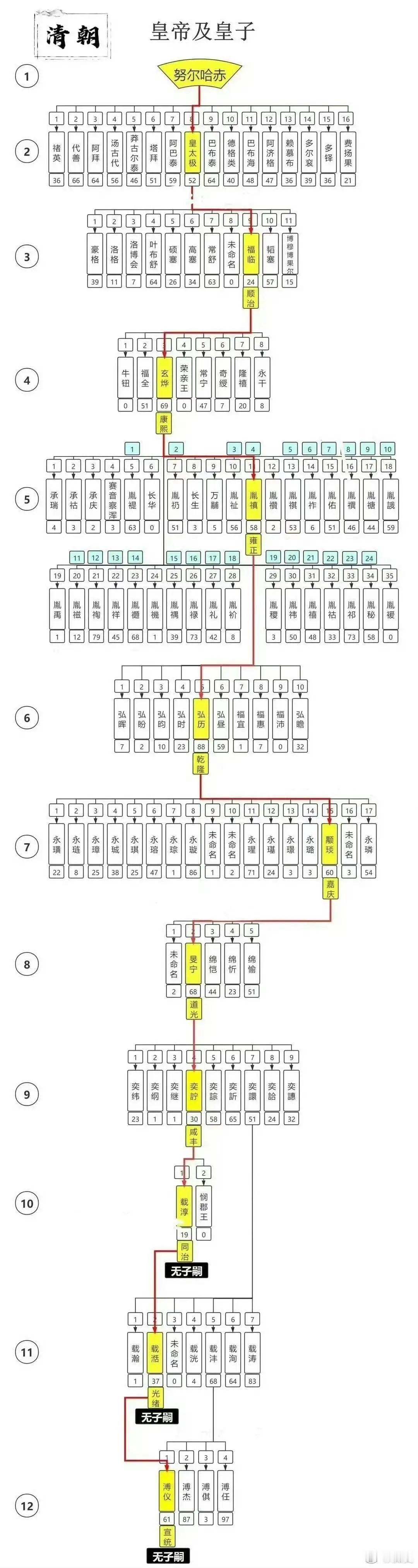 清朝所有皇帝和他的皇子!