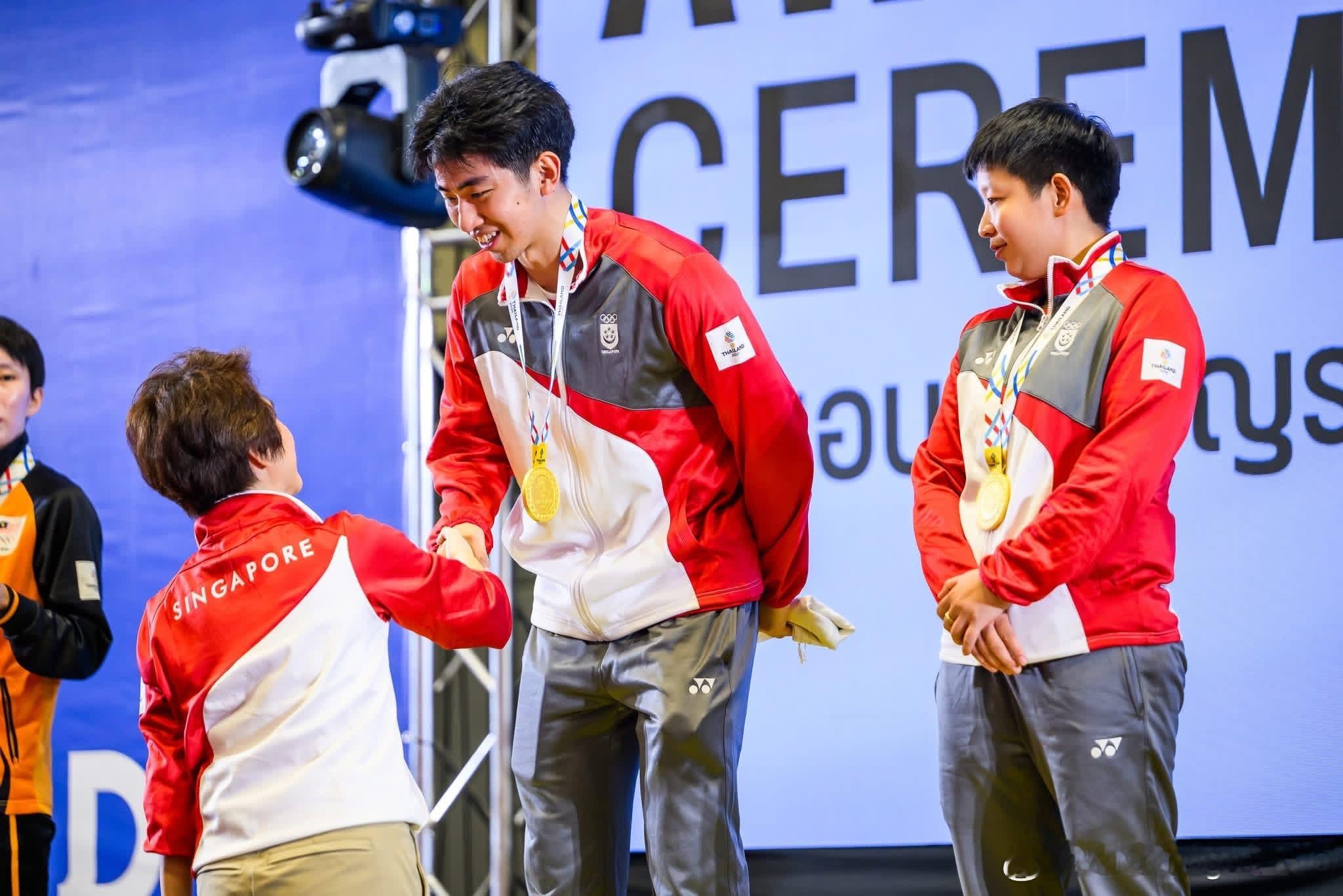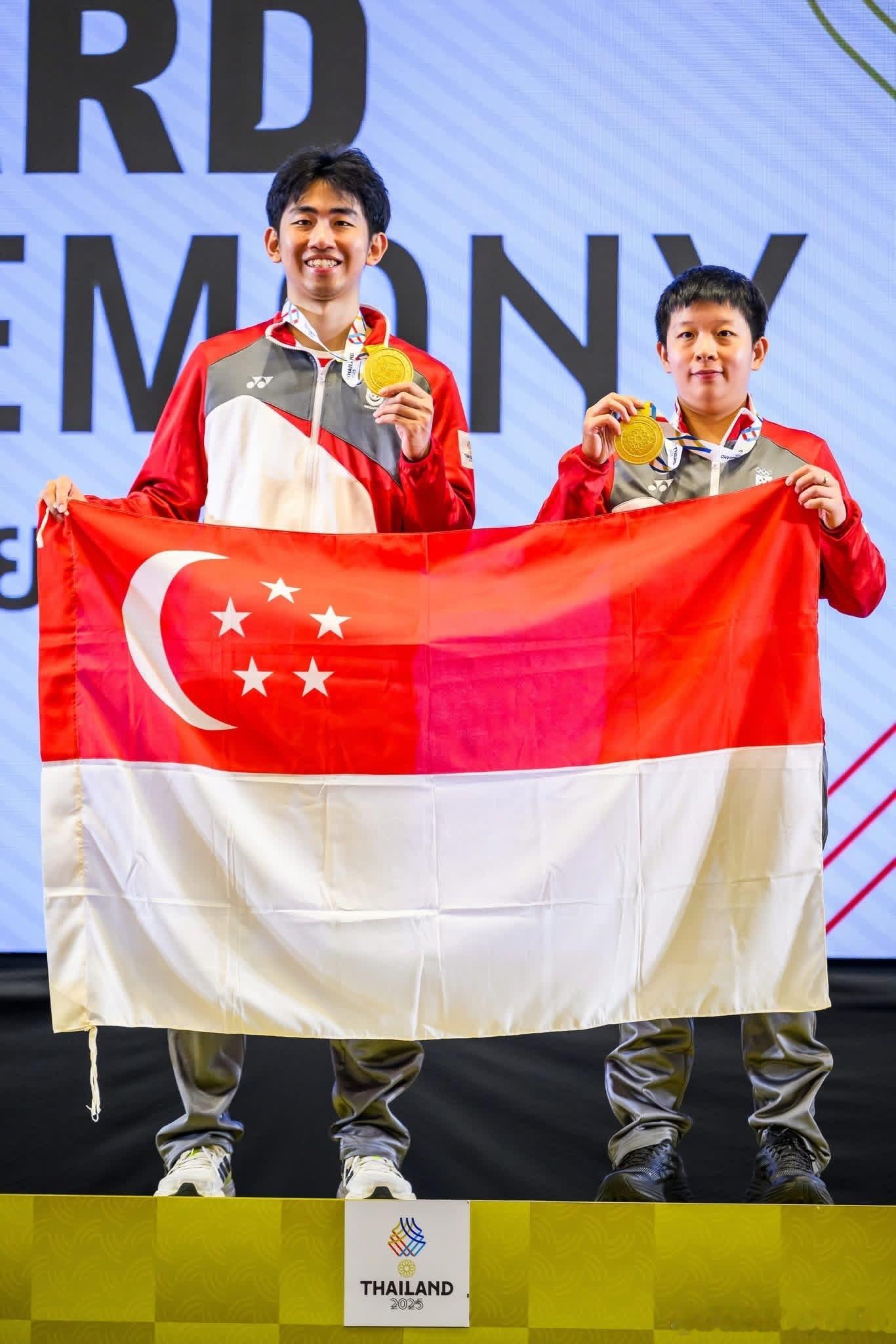 🇸🇬新加坡队收获第33届东南亚运动会乒乓球混双金牌🥇曾尖/冯耀恩男双金牌?