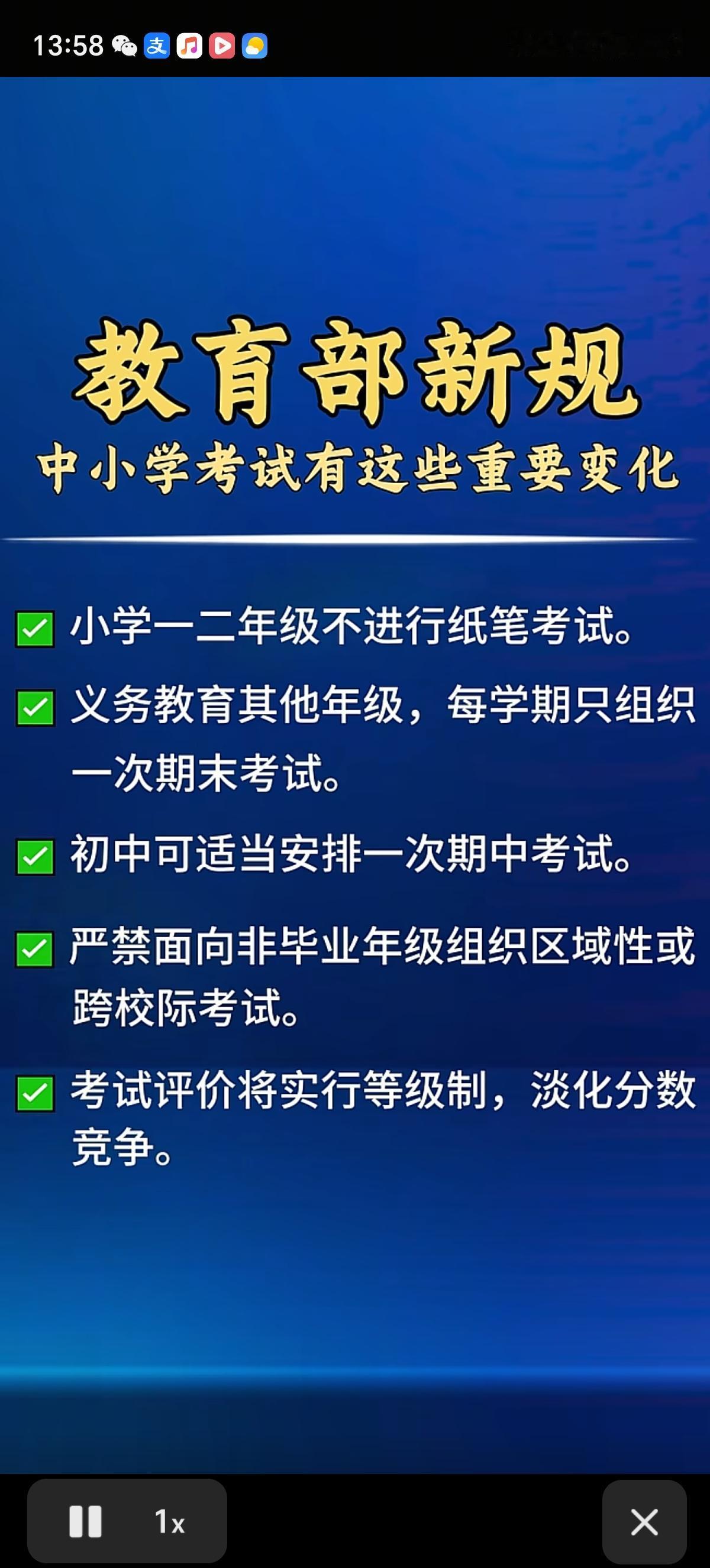 这边一二年级不可以进行纸笔考试的事情都进行了好几年了,起码第3年是有了。学校不给练习册,发电子版让家长印刷。一二年级还不留作业,在学校上延迟课写完了。 现在给孩子们减轻点负担也好,学生过去频繁考试,精神总是高度紧张状态,都不快乐了。每天不是学习就是学习,年级越高压力越大,很少看到孩子们的笑脸了。 让学生少考试是好事情,少考试就少攀比。学生少攀比了,家长就少攀比,父母少给自家孩子压力对大家都好。 过去小孩子都是组织小伙伴玩耍,现在内卷得不行,没上幼儿园的小孩要上早教课,要早早识字背古诗。上了幼儿园的要上启蒙班,早早学习英语、编程、数学、拼音之类的。不会不行,上了小学之后老师不给从头好好讲课,人家默认你会了,随便讲讲就过去了。 小学的竞争压力都挺大,到了初中和高中更是卷的不行,可能学生自己都会困惑,这么卷到底是为了自己好还是为了家长有个炫耀的资本,或者是为了给学校争光?
