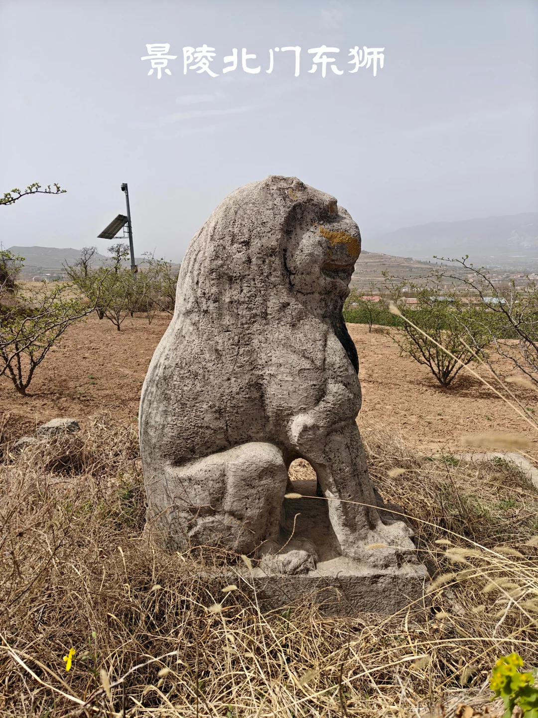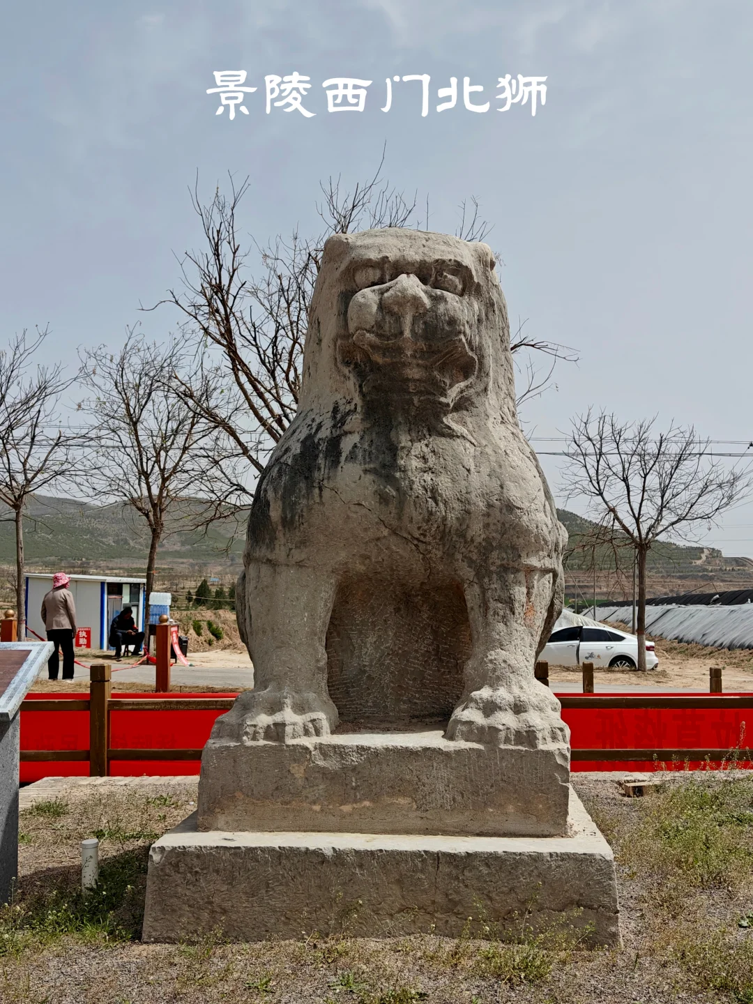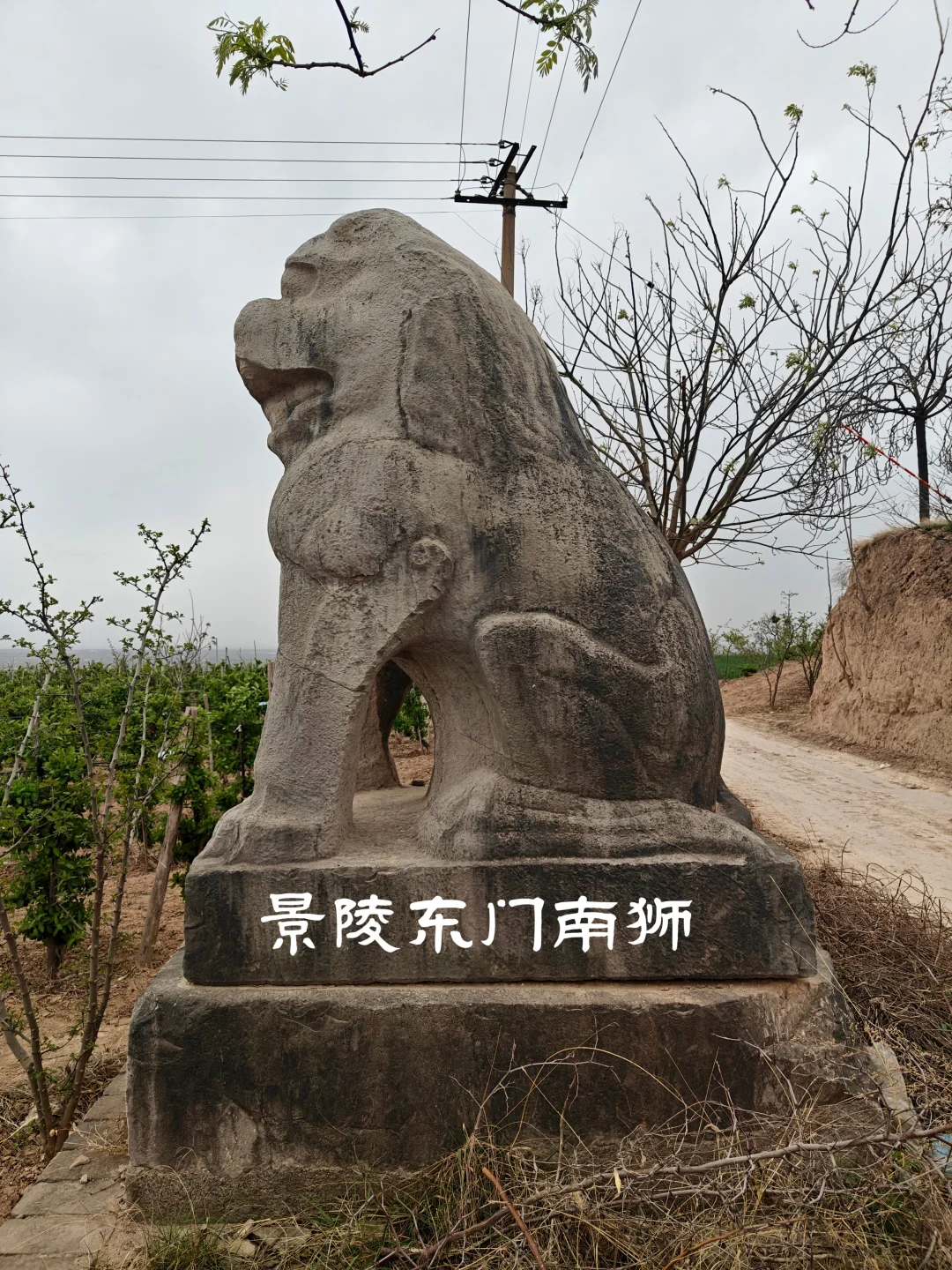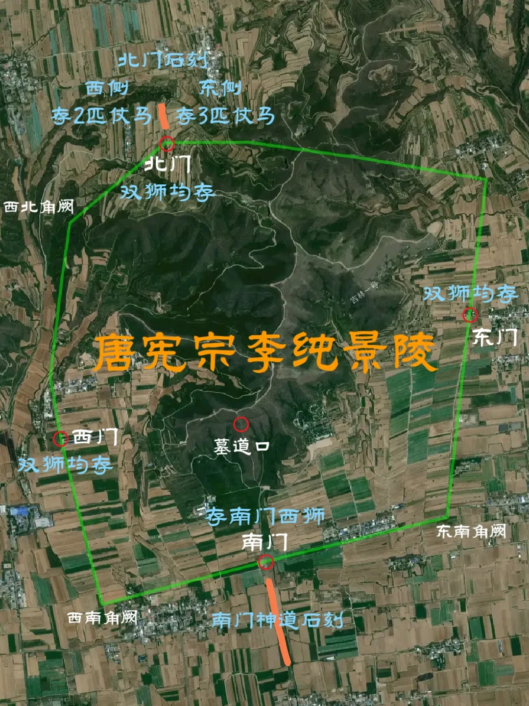 唐朝帝陵自高宗乾陵起,于内城四神门外各列置一对石狮,共4对8只。景陵目前存有7只石狮,南门东狮缺失。