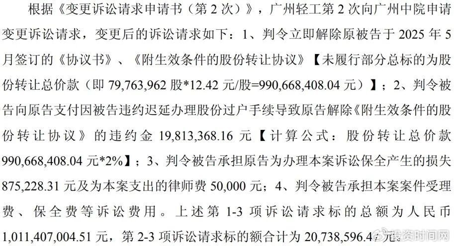 广州轻工放弃了此前主张的股份过户要求,转向现金索赔