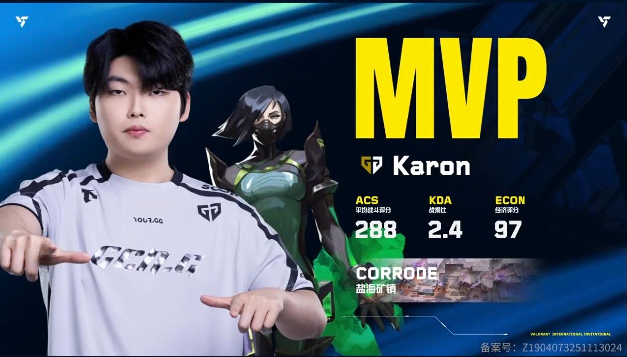 288战斗评分97经济评分,Karon斩获GEN对阵BLG比赛MVP