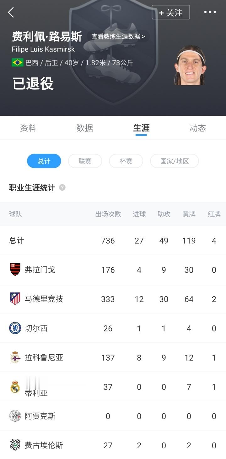 费利佩·路易斯球员时代曾效力马竞、切尔西等球队,2024年1月宣布退役。