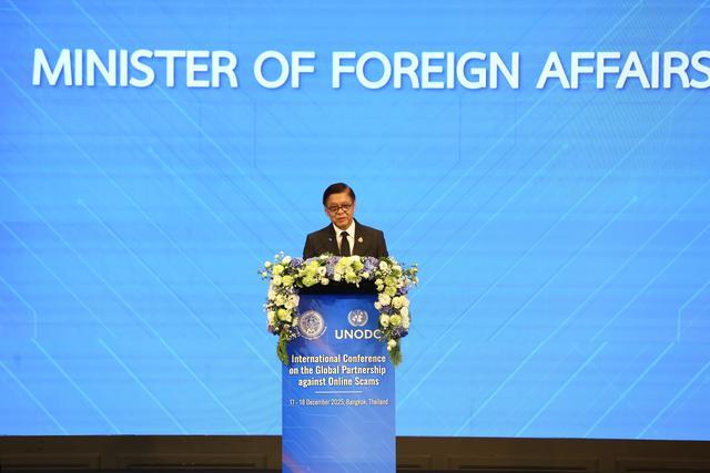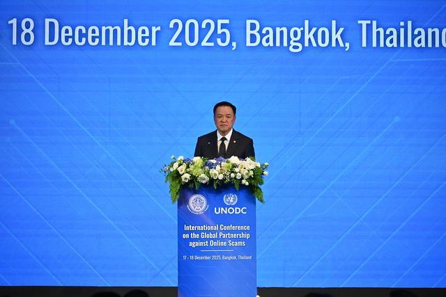 12月17日,在泰国曼谷,泰国外交部长西哈萨在全球打击网络诈骗伙伴关系国际会议上发言。新华社记者孙玮彤摄